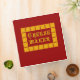Cheese Maker retro kitchen art in decorated gothic letters with a vintage woodcut art pattern border in yellows and cheddar orange for cooks who love to make cheese.