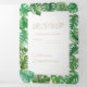 This is a vertical trifold wedding invitation with tropical hand painted leaf design. This is part of my "Cheese plant collection' with the swiss cheese plant leaf as the main motif. The lettering is gold with a variety of classic fonts. All of the key wording is yours to personalized along with a space on the back panel for an image of your choice. The last panel is for your guests to detach and RSVP as a postcard.