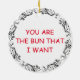 Funny food pun Christmas holiday ornament. Realistic photo of a cheeseburger and French Friends. You are the bun that I want.