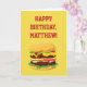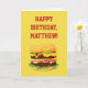 Donnez aux fans de cheeseburger une carte d'anniversaire personnalisée avec leur nourriture préférée. Ces cartes illustrent un double cheeseburger savoureux contre un arrière - plan jaune vif. Utilisez les champs modèle pour personnaliser facilement le message à l'avant de cette carte et ajouter votre propre salutation spéciale à l'intérieur. Trouvez d'autres modèles de hamburger délicieux dans la boutique Asterisk Designs Zazzle.