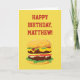 Give cheeseburger fans a personalized birthday card featuring their favourite food. These cards feature an illustration of a tasty looking double cheeseburger against a bright yellow background. Use the template fields to easily personalize the message on the front of this card and add your own special greeting to the inside. Find other yummy burger designs in the Asterisk Designs Zazzle shop.