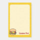 Cheeseburger cartoon illustration. Junk food outline icons yellow pattern background. Custom text.