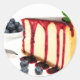 Close-up of Cheesecake topped with Blueberry sauce and fresh berries on the side