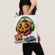 Cheesy Halloween Vibes: Pumpkin Enjoys Pizza Tote Bag