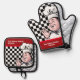 Chef Black White Chequerboard Red Family Kitchen Oven Mitt & Pot Holder Set