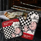 A chef in his kitchen uniform, including his toque (chef's hat) on a black and white chequerboard background with a red boarder. Add your family name or the name of the cook in your kitchen -- The Burton Family Kitchen or Maddie's Kitchen. This is a lovely design for anyone's kitchen. Your favourite chef is going to love these. Purchase the set or you can purchase just the pot holder or just the oven mitt. You can also choose a heat resistant quilted silver back or a black silicone back. Makes a great gift for any occasion or just because.