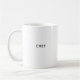 This custom coffee mug features "Chef", meaning "Chief" in French, in classic sans serif typography. Makes a funny gift for the boss, or anyone who is good at taking charge, and with editable text, you can customize it on both sides. Several styles and colours available.
