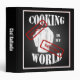 A graphic illustration of a chef hat on a binder. The binder has the text "Cooking is my World", and text templates for your personalization. ©2013charmainepaulson