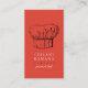Rustic drawn chef hat on fiesta red background, standard culinary arts business cards. Text font style and colour can be customized.
