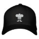Fits well due to elastic edging, not adjustable. Good qualty material. Good quality embroidering. Subtle lettering (white on beige) just as my wife likes.