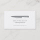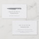 Simple professional graphic business cards in a grey and contrasting white with a simple modern graphic chef's knife art. Ideal for personal chefs, catering businesses, restaurants, professional chefs, food writers and other food related businesses. Customize with your own catering business name, address, name, website and phone number. Design and artwork by Sarah Trett.