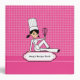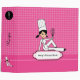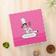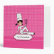 Chef binder with lovely illustration of a girl chef, and lots of room for photos on the back, all on a pretty painted gingham background in hues of pink, and magenta.