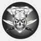 You take fierce pride in your culinary skills! Show it with this skull chef sticker featuring a sick skull chef wearing his chef hat, in front of two sharp chef knives and spotlighted black background. The back can be changed to your colour of choice. Customization allows you to resize the images to fit your name for a personalized touch!