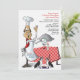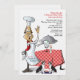 A fun invitation that's perfect as a Wedding Rehearsal Dinner Party Invitation or a Birthday Party for any age. The chef is presenting a covered plate to the table set with a glass of wine.