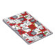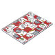 Red and white chequerboard pattern with a variety of cooking utensils.