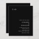 Modern budget Wedding Invitation featuring a simple and minimalist layout with your monogram in the upper left corner and your wedding details in the bottom right corner. All design elements are in white over a black background and may be changed in the design editing tool. This chic wedding invitation with a minimal yet elegant design goes well with any style of contemporary wedding.