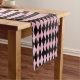 Ce coureur de table a un motif arlequin noir et rose.