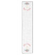 Une bougie avec un arc, des baies sèches et une brindille de pin sur un arrière - plan blanc avec des flocons de neige