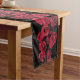 Ce joli couloir de table fleuri est décoré d'un motif abstrait répétitif de fleurs de rose rouge sur un arrière - plan noir pur. Quelle belle idée pour les jardiniers !