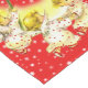 Image vintage de la danse des bébés anges sur un coureur de table de Noël rouge avec des flocons de neige en blanc. Très festif !