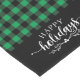 Holiday table runner is shown with a green buffalo plaid.