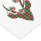 Le coureur de table de vacances est présenté avec un imprimé de tête de cerf festif dans un plaid vert et rouge. Couleur blanche