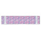 Customisez cet élégant coureur de table avec un motif de fleurs blanches et de boucles bleues sur un arrière - plan ping saisissant avec votre nom de famille.