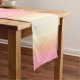 This table runner feels like the soundtrack of evening settling in. Deep violet tones drift into smoky rose and warm crimson, creating a flowing gradient that moves across the fabric like the progression of a slow, atmospheric song. The colors shift gently from cool twilight notes into the warmth of a lingering chorus, giving the design a quiet musical rhythm.