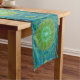 Avec un mélange moderne de motifs Tantric et Lotus mandala en vert et turquoise, ce coureur 100% coton symbolise la nature et l'air, sensibilisant au changement climatique. Fabriqué à la main aux États-Unis avec une impression dynamique de bord à bord, c'est une touche parfaite d'élégance et de tradition pour toute occasion.