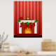 Cheminée avec Garland de Noël, Bas, Bougies de collier, Horloge de manteau, Baies de Noël Décorations avec papier peint
