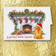 L'avant de cette carte de voeux de Noël a l'image d'un Chien d'or Retriever portant un chapeau de Père Noël rouge et blanc. Le chien est assis devant une cheminée décorée, attendant le Père Noël. Le texte rouge en bas dit "En attendant Père Noël". Le texte est personnalisable, comme tout le texte intérieur, de sorte que vous pouvez le faire dire ce que vous voulez. Mignonne ! Voir d'autres images de Golden Retriever, ainsi que des dizaines d'autres produits de races de chiens, à Dog Village.