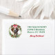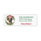 Sur cette étiquette d'adresse de retour de vacances, un majestueux chien Saint Bernard est encadré dans une couronne verte de Noël avec un arc rouge en haut. Votre texte personnalisé est en vert à droite, avec un champ de texte pour un message de bienvenue en rouge ci-dessous.