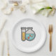 Paper plates with a cute illustration of a test tube holding yellow liquid and a rounded flask/beaker holding green liquid with red bubbles.