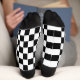 Original digital artwork on these fun socks featuring a vintage retro chequerboard pattern in black and white. These playful crazy socks are considered a sustainable product and are printed with water-based inks. Cozy and comfy and make a great gift. One size truly fits all.