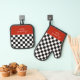 A perfect gift for the Italian Chef or Cook who enjoys preparing Italian food, this design has a crisp black and white chequerboard pattern. A red banded frame surrounds the text template which has Italian text "La cucina di" and can be personalized with the Chef's name. These oven mitts and potholders make wonderful gifts for friends and family.