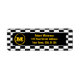 These cool return address mailing labels have a black and white chequerboard design in the background. There is a solid black area where your name and address will appear in yellow font. Customize text with your information. There is a black oval with yellow trim and your monogrammed initial in yellow as well. These super cool chequerboard labels are perfect for race fans and anyone that likes cool design.