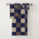 Chequerboard Pattern Dark Blue Brown Checks Bath Towel Set