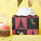 Chequerboard Santa Snowman Wreath Black Red Wrapping Paper