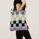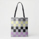 Have fun with this chequerboard tote bag with a colourful print which is different on both sides.