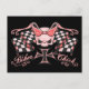 A biker chick skull and chequered flags, pink & black, with a Maltese Cross and, "Biker Chick" in script lettering. T-shirts, hoodies, cards, gifts.