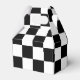 Make your party favours memorable with lunchbox style favour boxes featuring a bold black and white chequered pattern made of rows of alternating white and black squares.