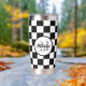 Chequered Black and White geometric retro Monogram Insulated Tumbler