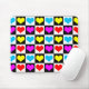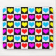 Creative Colourful geometric red yellow Blue and purple Love Heart Shapes Chequered on black And White Block Print surface pattern design.