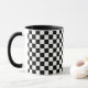 A classic chequered pattern decorates this coffee mug. The design is from original art.