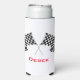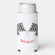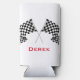 Chequered Flags Design Seltzer Can Cooler with customizable text and background colour.