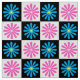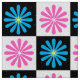 Pink And Blue Floral Abstract in check chequered Black and White Square boxes Modern Surface Pattern Design.