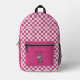 Thid design with chequered pattern of pink and white squares is a great gift for girls. The pattern also includes little hearts to show off cuteness and love. This design also contains a cute illustration of a cartoon-like unicorn that holds a fluffy , purple heart. you can customize this design with the name of your daughter, sister, or the person you want to gift this product.
