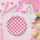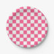 Abstract digital art of hot pink and white squares in a chequered formation.
