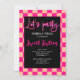 Chequered hot pink peach retro Lets party Sweet 16 Invitation