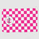 Chequered Hot pink white geometric retro Monogram Golf Towel